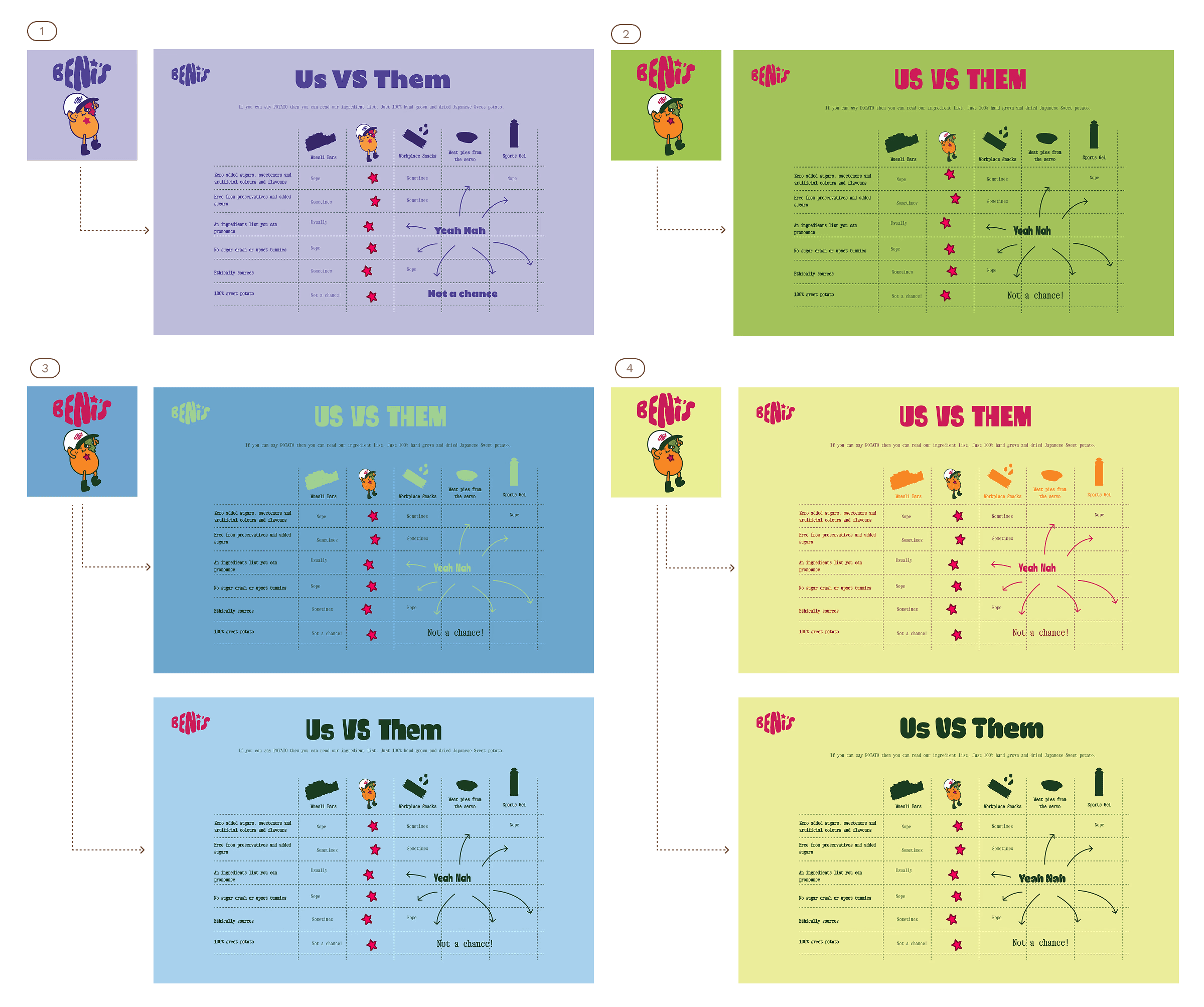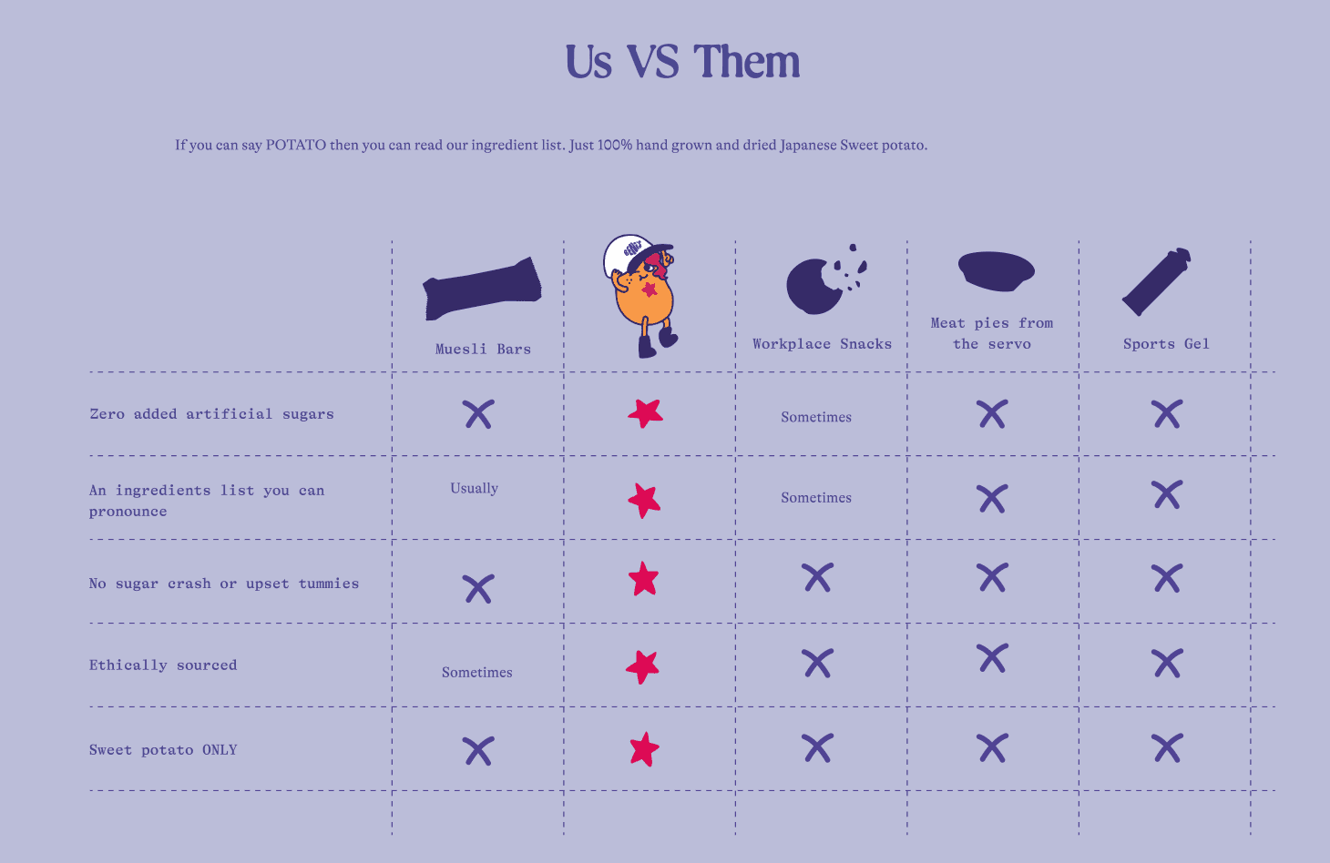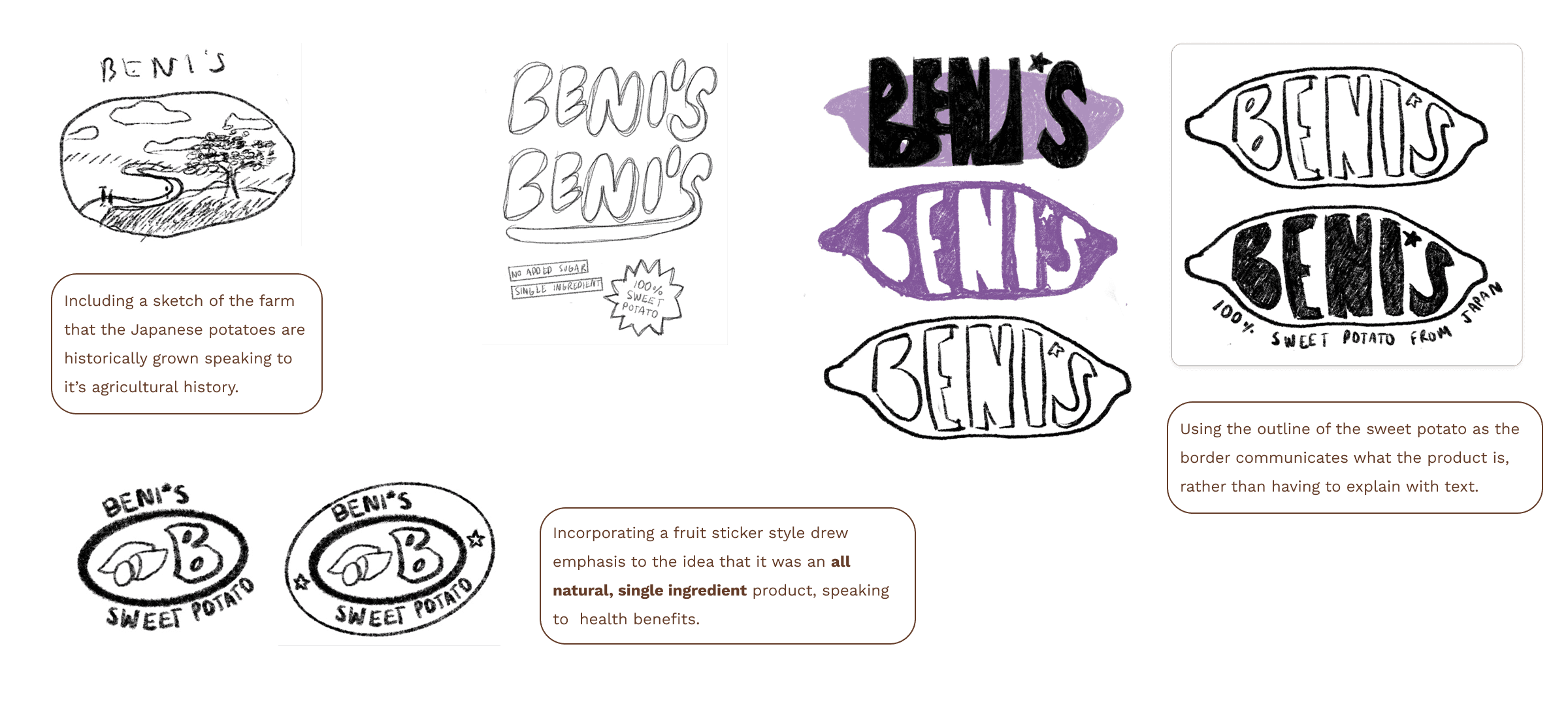 This palette also provides a nod to the purple and orange in the potato, which effectively communicates the original Japanese sweet potato.