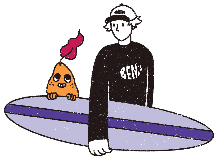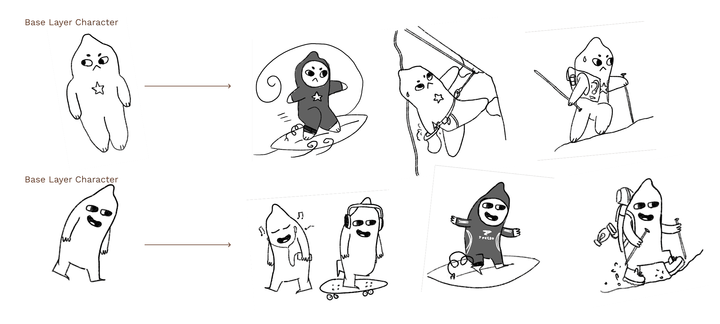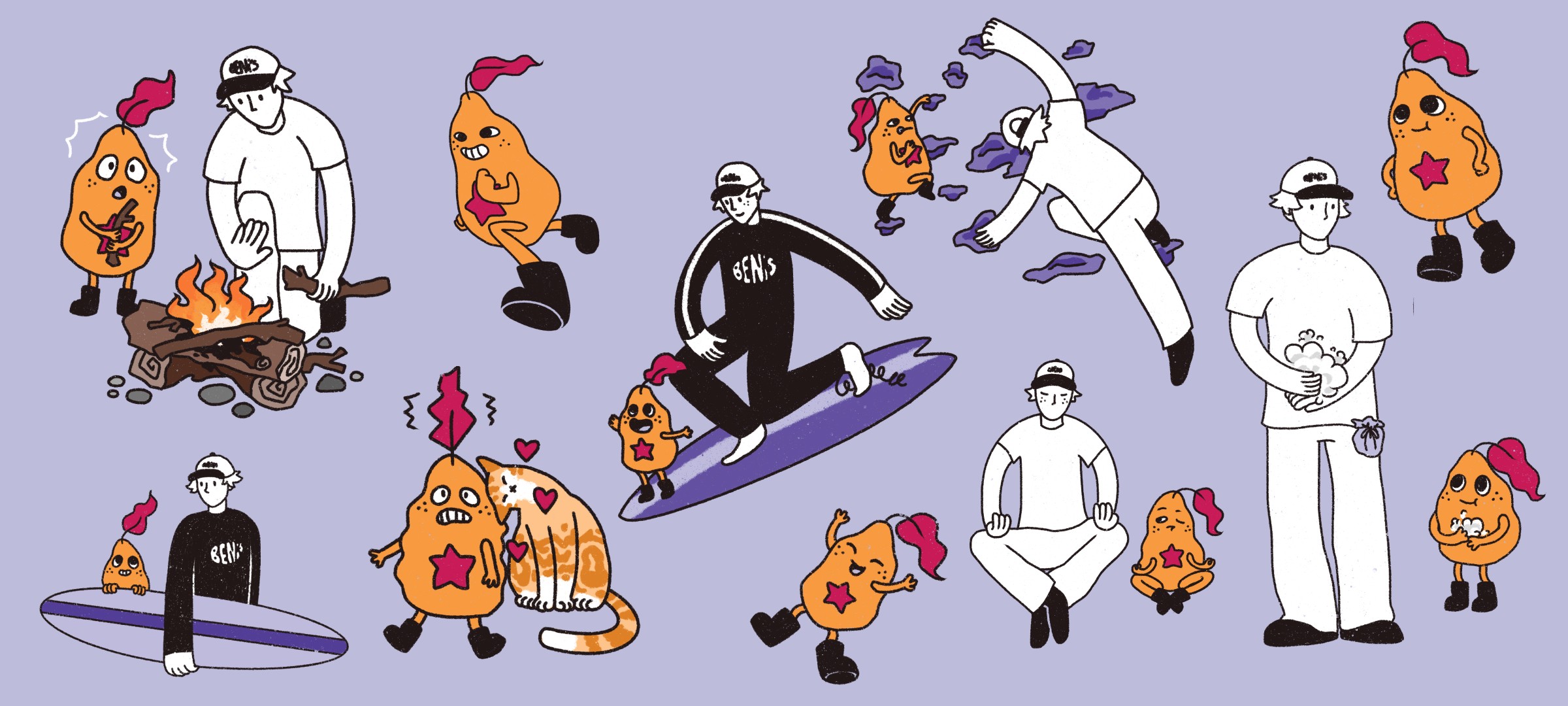 We decided to incorporate more movement in the character. The product is targeted toward 'active people', so allowing consumers to envision themselves doing the same activities as Beni allows a deeper connection with the brand.
