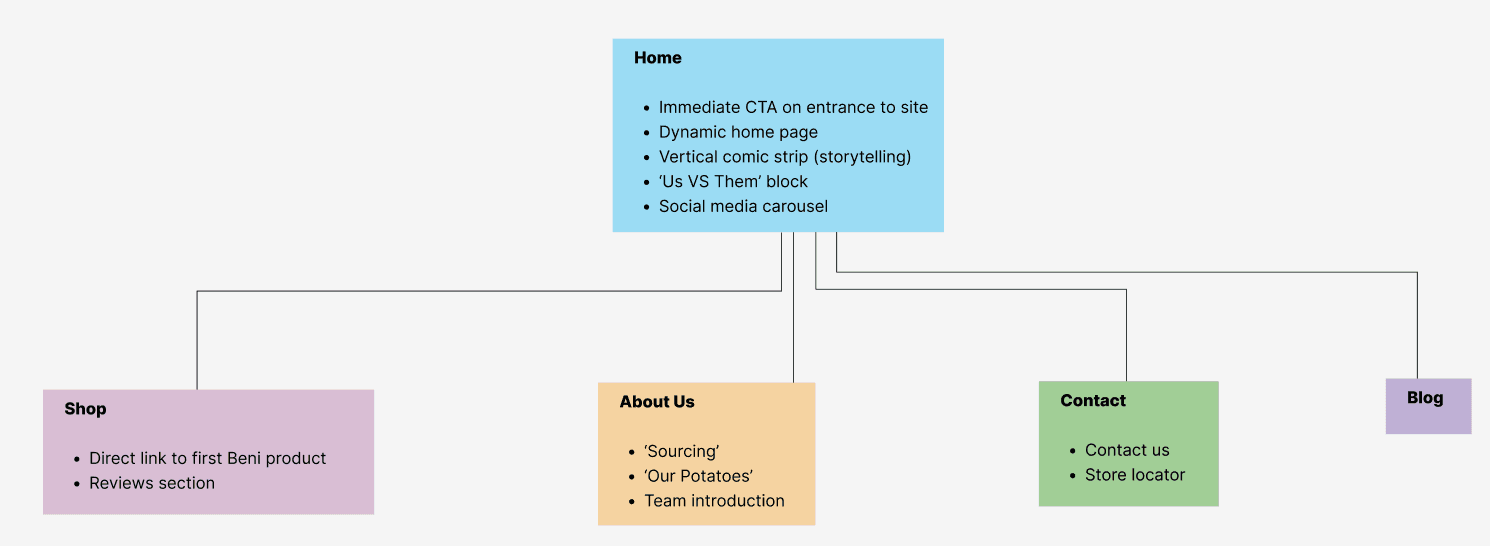 I met with the client and collaboratively constructed a navigation map to identify each section of the website that she wanted, and most important features of each page. This way, I could save time and effort in creating aspects of the website that were irrelevant.