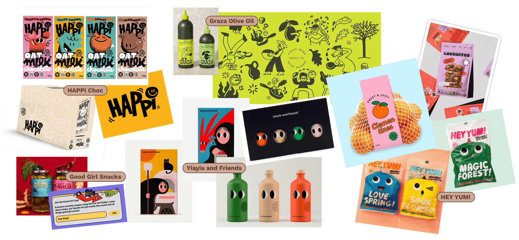 The client wanted a colour palette that 'pops out' when the customer walks down a supermarket aisle; Something that will catch their eye and draw their attention.