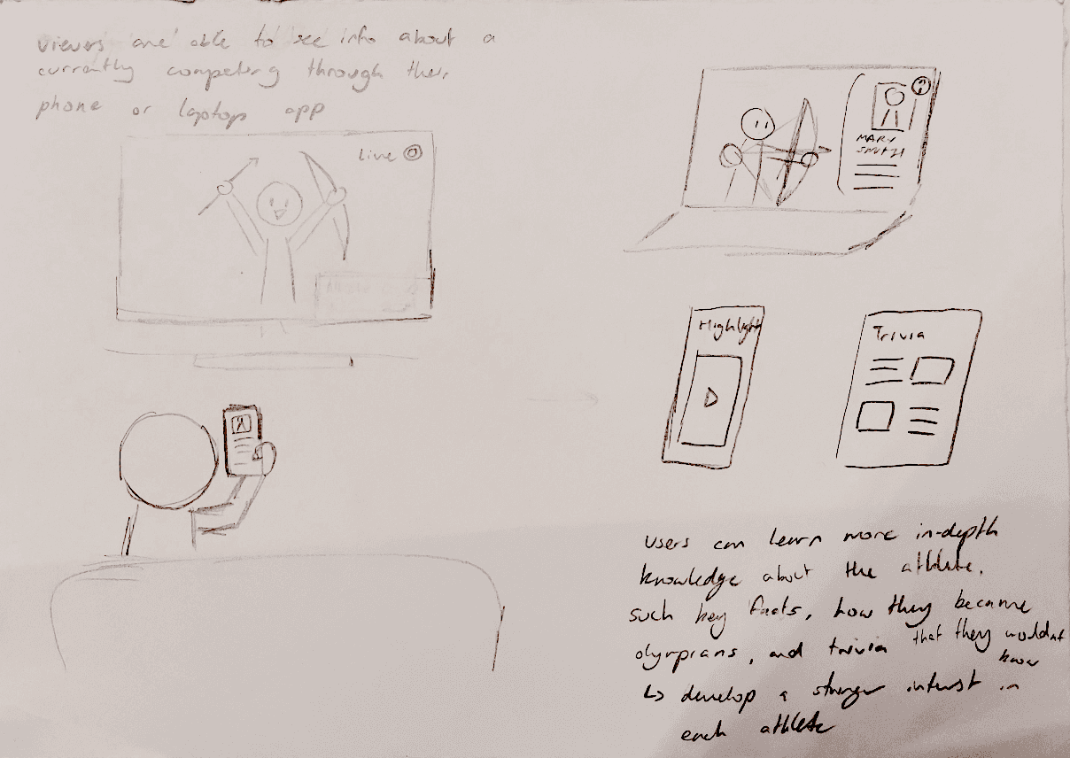 The concept we decided upon was a culmination of the My Olympics App and Athlete Kiosks, combining successful features from both ideas to create an effective concept that hits all of our insights. We also wanted to incorporate a card-trading aspect:
