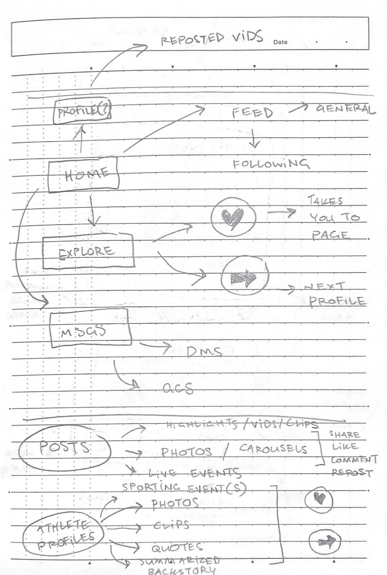 Using the navigation map, we started sketching the respective screens necessary, allowing us to define the main functions of each of the screens potential layouts and any annotations needed to describe the intended user interactions